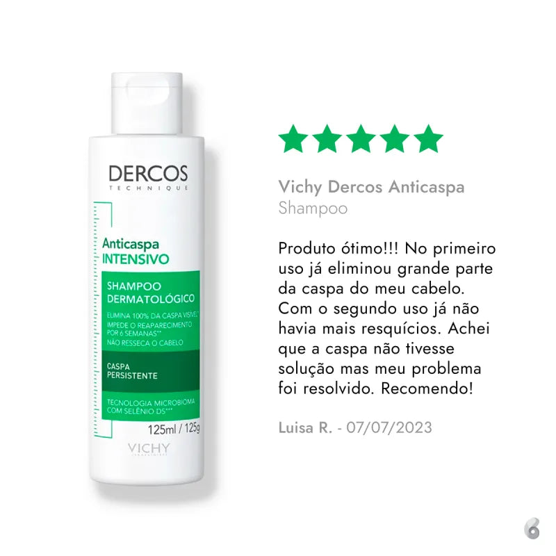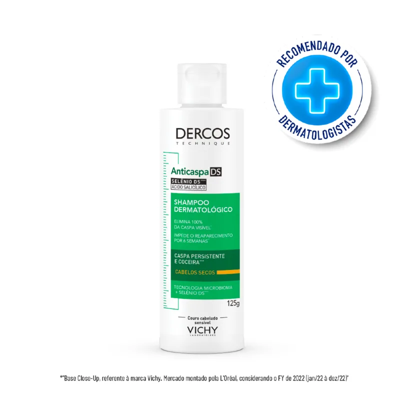 O Shampoo Vichy Dercos Anticaspa DS para Cabelos Secos é enriquecido com a tecnologia Microbioma com Selênio DS, que ajuda a reequilibrar o microbioma do couro cabeludo e eliminar 100% das caspas visíveis, agindo desde a primeira aplicação e evitando a reincidência por até 6 semanas.