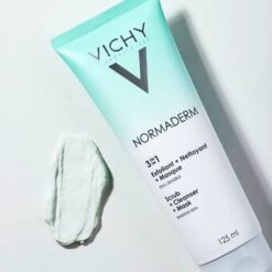 Normaderm 3 em 1 possui uma associação de ativos com efeito “peeling” com 25% de argila (Kaolin) em uma textura creme. Além disso, não contém sabão, parabenos, álcool e é não comedogênico. Pois sua fórmula é composta por Zinco, Ácido Salicílico, Ácido Glicólico, Ácido Glicirretínico e água termal de Vichy.